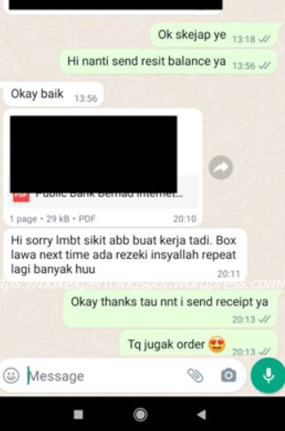 Alhamdulillah , sempat kami kongsikan feedback daripada satu lagi founder produk kecantikkan. “Box Lawa next time insyaAllah repeat order lagi banyak…”